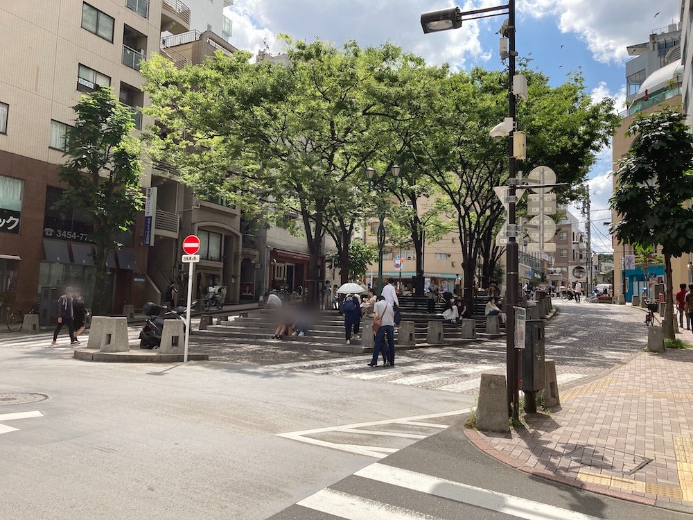 Azabu-Juban used to be ” a downtown in uptown”. Azabu has been the typical “uptown” in Tokyo for more than 100 years, but Azabu-Juban, which locates in the lowland in Azabu area, attracted small shops and small houses for working-class people in the past. However, the opening of two new subway lines, both of them brought stations under this town, awakened the potential of this town 20 years ago. Since then, this town is getting more and more fashionable. In the photo you can see many people chatting under the trees , a usual but peaceful day in June.