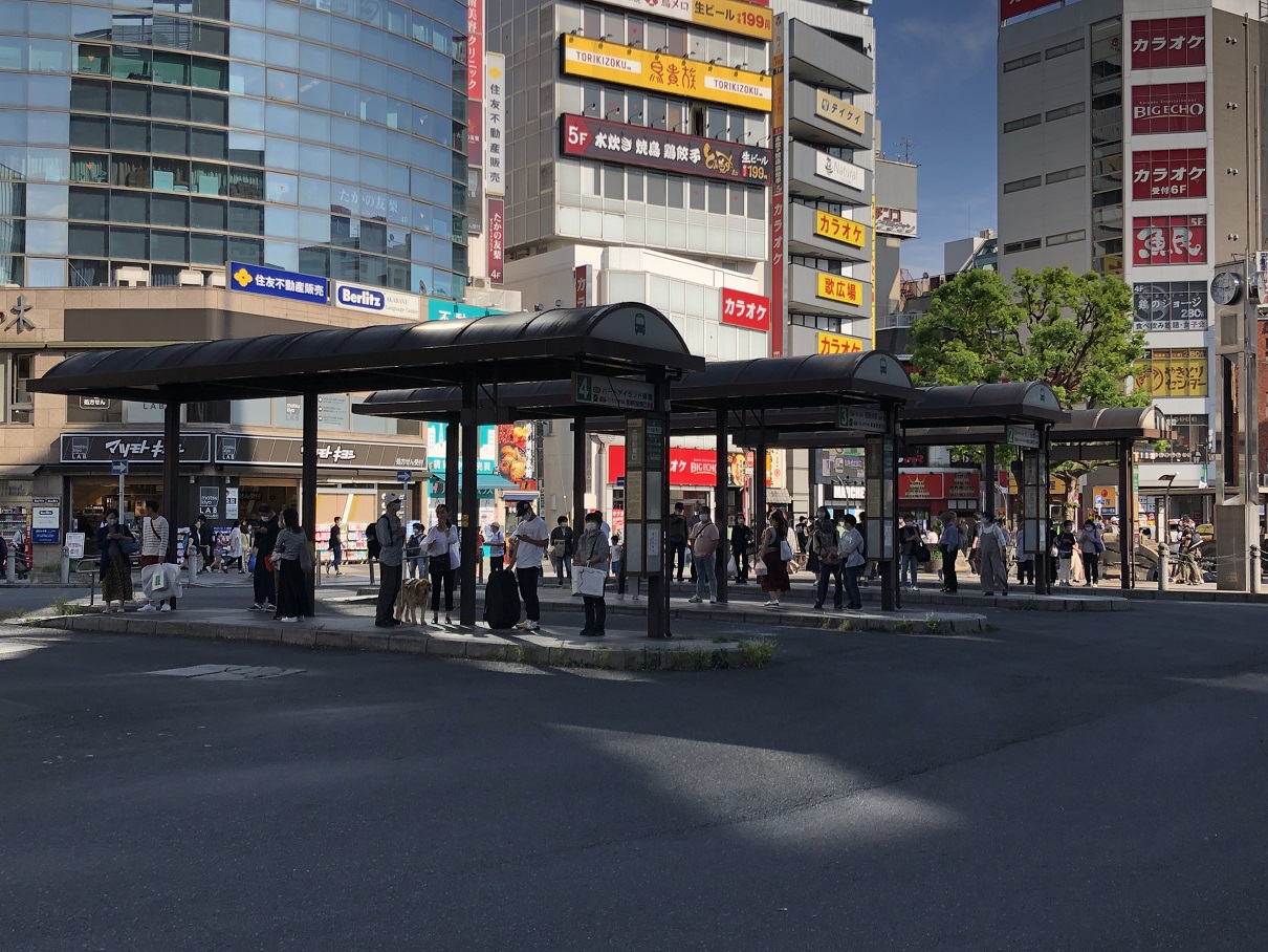 Akabane is one of the key downtowns in Tokyo. It is located at the northernmost part of Tokyo, and for people living in the northern suburbs ,Akabane Railway Station is the gateway to Tokyo. This is the photo of the bus terminal adjacent to the railway station. It seems people came back to this terminal. It is said that is bacause the number of Coronavirus patients has declined, but I feel people are getting accustomed to live with the desease, albeit slowly.