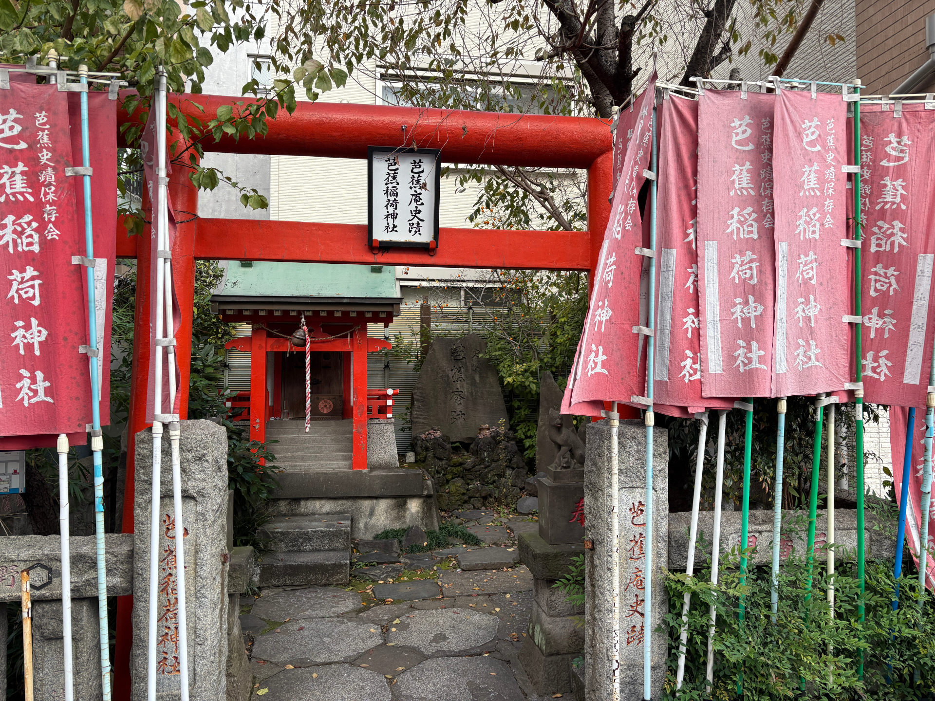 Basho Inari Jinja enshrines Matsuo Basho, probably the most famous Haiku poet in Japan. He lived in early Edo era, in the latter half of 17 century. He was a wandering minstrel (“bard” for French, and “troubadour” for Italian), but still his home base was Edo, and this place was one of his residence.