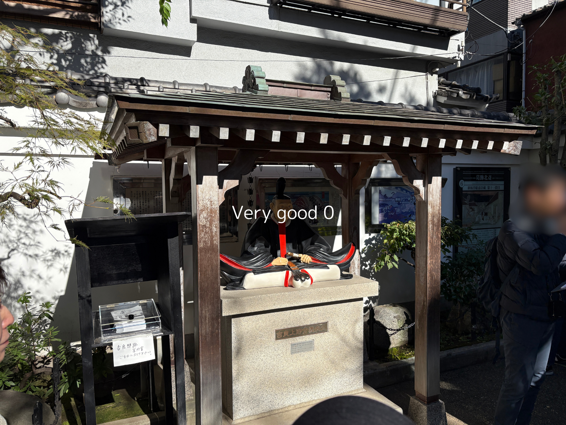 This site is where Lord Kira lived 300 years ago., near the Sumida river. You can see the statue of him in the photo. He was one of the lords (Daimyo) in Tokugawa shogunate.